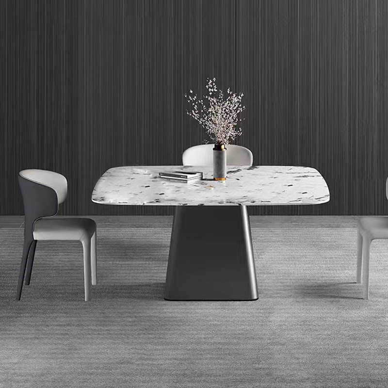Yumuşak çizgileri, geometrik şekilleri ve yüksek kaliteli malzemeleri olan kare seramik mermer yemek masası