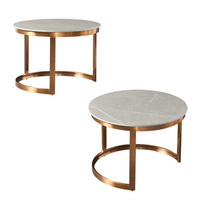 Doğal güzelliği ve sofistikeliği yansıtan eğri paslanmaz çelik tabanlı seramik mermer kahve masası