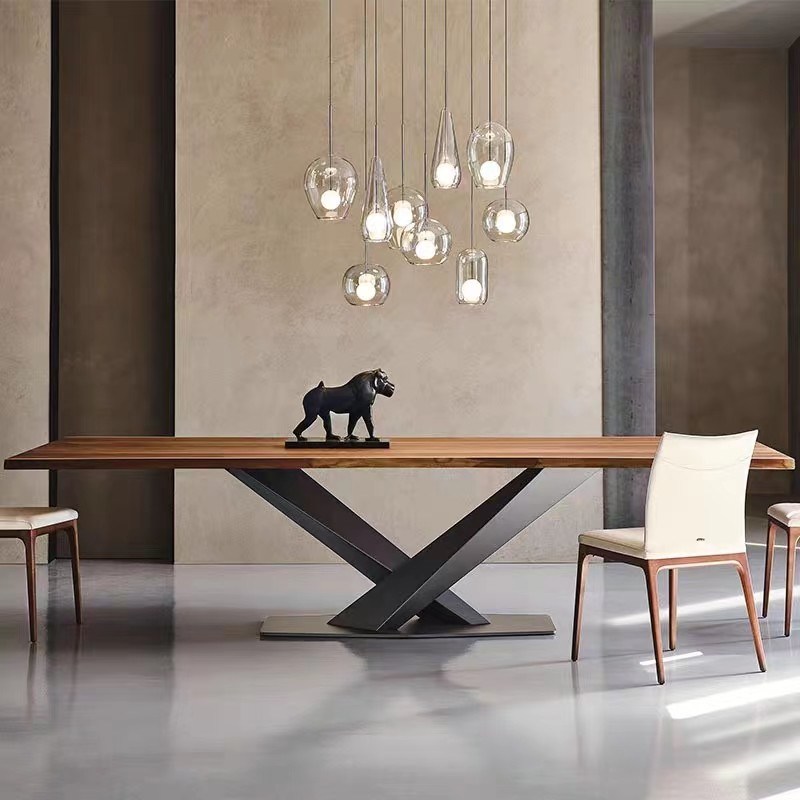 2.Çapraz metal taban: Yemek masasının tabanı metalden yapılmıştır ve benzersiz bir çapraz tasarımına sahiptir.Temiz hatlar., zarif bitirme ve metal tabanın geometrik tasarımı, ahşap masaüstüyle görsel olarak çarpıcı bir kontrast yaratır ve onu herhangi bir yemek alanında dikkat çekici bir özellik haline getirir.